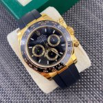 Superior quality at a glance! Rolex Daytona, latest model! Black Samurai dial. This model features a black ceramic bezel inlaid with a steel ring, paired with an imported top-tier 4131 movement! A masterpiece crafted with meticulous care. Every watch undergoes rigorous testing with near-zero returns. This is currently one of Rolex's most sought-after watches, requiring indefinite waiting lists at authorized dealers. The official price is over 120,000 RMB, but on the secondary market, it's more than double that, costing over 240,000 RMB. Of course, the watches on our shelves are industry benchmarks, meticulously crafted over nearly a year, and are my personal keepsake. The on-wrist effect is identical to the genuine article; most people can't distinguish them from the real thing, and even watch experts need a magnifying glass to examine them closely. Therefore, you don't need to worry too much about authenticity when wearing them daily! The DDD watch features a custom 4131 movement identical to the genuine article, with all dimensions and functions exactly the same. Developed and marketed for many years, this movement is highly mature, stable, and accurate. The DDD case is a direct copy of the original, measuring 40mm x 12.4mm, crafted from the same 904L stainless steel as the genuine article. It boasts a high nickel content, making it wear-resistant, corrosion-resistant, and with a bright white surface. The solid ceramic bezel is scratch-resistant and wear-resistant, with white gold-plated tachymeter scales that won't fade, offering the same quality as the genuine product. The high-gloss ceramic dial features overlaid lettering and the logo, creating a slightly raised effect when viewed from the side. The dial's background texture has undergone numerous filters and corrections to ensure a 100% match to the original. The Rolex metal logo is a separately molded piece, its three-dimensionality and roundness rivaling the original. It also features an easy-to-read Chroma Light display with long-lasting luminous material. The DDD watch crystal is a flat, scratch-resistant sapphire crystal. The DDD watch has a perfect, identical look to the genuine product. The 6 o'clock position features the same anti-counterfeiting crown as the genuine watch. The clasp is made of 904L stainless steel, crafted from individual parts. It features brushed inner corrosion, the Rolex stamp, and an external safety ring identical to the genuine clasp