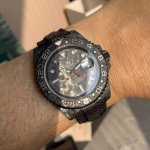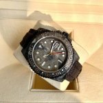The new Rolex Super Limited Edition Gmt-Master II is arguably the lightest Gmt-Master II ever. DDD Diw has remade the Gmt-Master II with a carbon fiber case, and all parts, including the bezel and dial, are also made of carbon fiber. Besides the unique irregular texture of carbon fiber, the carbon fiber bezel features a new carbon fiber implantation technique for the first time, creating rich visual layers and a delicate texture. DDD The transparent case back clearly displays the Rolex exclusive Cal. 3186 movement with its quick-set date. DDD It comes with a soft Velcro strap and an integrated carbon fiber buckle. The combination of ultra-light carbon fiber and the comfort of a fabric strap enhances the overall wearing experience. DDD The initial production run offers four dial colors and five different strap styles. DDD
