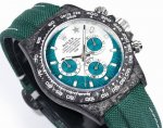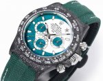 This is a custom carbon fiber version of the Rolex Cosmograph Daytona series from Tw Factory. The watch is not only lightweight but also incredibly durable. Each timepiece features a unique carbon fiber pattern. The case dimensions (40 x 12.4 mm) match the original. Tw Factory's expertise in crafting carbon fiber Rolex watches is unparalleled in the market. The entire case, bezel, and case back are made of high-composite carbon fiber and super-strong luminous powder. Details are meticulously hand-beveled and polished, resulting in exceptional quality. The strap is made of breathable, comfortable, and soft synthetic fiber. The movement is the latest, precise, and mature Shanghai 4130 movement, perfectly delivering powerful functions