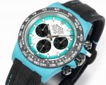 Tw Factory Rolex Cosmograph Daytona Series Carbon Fiber Custom Edition. This watch is not only lightweight but also boasts a robust exterior. Each timepiece features a unique carbon fiber pattern. The case dimensions (40 x 12.4 mm) perfectly match the original. Tw Factory's expertise in crafting carbon fiber Rolex watches is unparalleled in the market. The entire case, bezel, and case back are made of high-composite carbon fiber and ultra-strong luminous powder. Details are meticulously hand-beveled and polished, resulting in exceptional quality. The strap is made of breathable, comfortable, and soft synthetic fiber. The movement utilizes the latest, precise, and mature Shanghai 4130 movement, perfectly delivering powerful functions. A true value king!