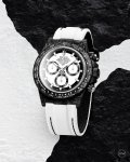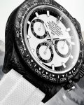 Tw factory's Rolex Cosmograph Daytona series carbon fiber custom edition. This watch is not only lightweight but also incredibly durable. Each timepiece features a unique carbon fiber pattern. The case dimensions (40 x 12.4 mm) perfectly match the original. Tw factory's expertise in crafting carbon fiber Rolex watches is unparalleled in the market. The entire case, bezel, and case back are made of high-composite carbon fiber and super-strong luminous powder. Details are meticulously hand-beveled and polished, resulting in exceptional quality. The strap and buckle are made of synthetic fiber woven strap, offering breathability, comfort, and a soft texture. The movement uses the latest and most accurate Shanghai movement, surpassing the performance of Dandong movements, perfectly delivering powerful functions and making it the king of value!