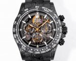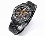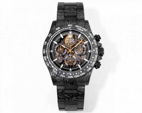 Twf Full Carbon Fiber Customized Rolex DDD. The entire case is made of imported composite carbon fiber, a new type of material with a timeless black color and an elegant, luxurious overall texture. Carbon fiber is flexible on the outside but strong on the inside, lighter than aluminum but stronger than steel, and also corrosion-resistant. The case has a variety of textures, and each carbon fiber watch will show different patterns due to different cutting methods, making it a unique piece. The movement uses the 4130 skeletonized movement, and the watch diameter is 40mm. Twf once again creates a different Daytona for you!!! DDD