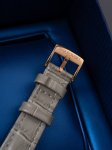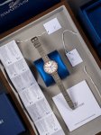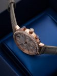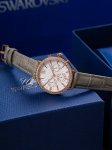 This watch is inspired by the iconic design of Swarovski's Matrix Tennis jewelry collection. It features an elegant 36mm stainless steel case with a rose gold-toned bezel set with 48 transparent crystals. The dial is adorned with guilloch
